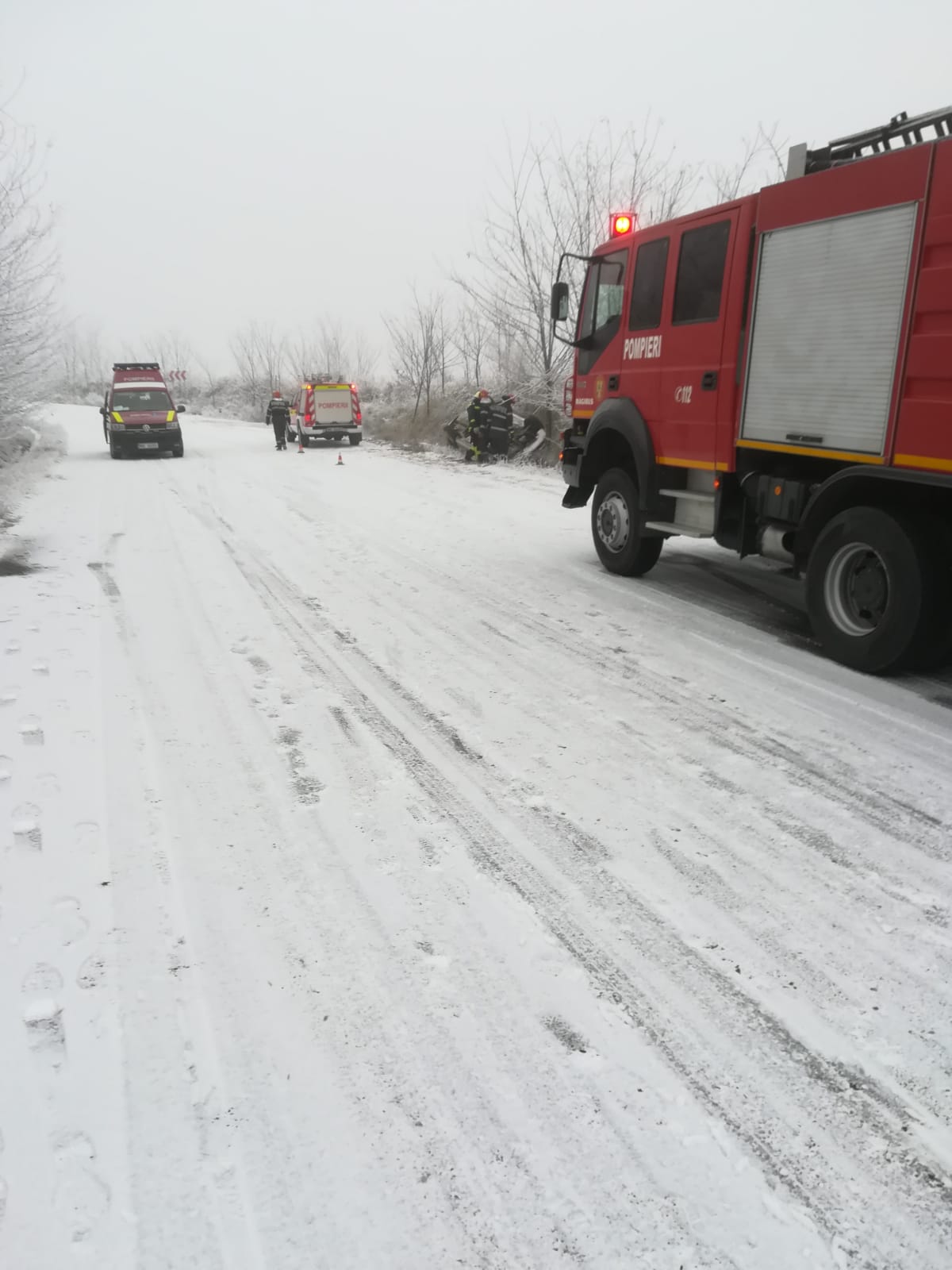 La locul accidentului s-au deplasat de urgență o autospecială de stingere cu modul de descarcerare, o autospecială de primă intervenție, un echipaj SMURD, 11 pompieri și un echipaj de la ambulanță.
