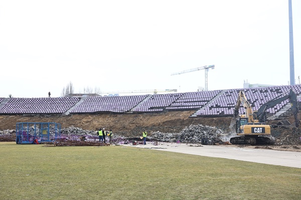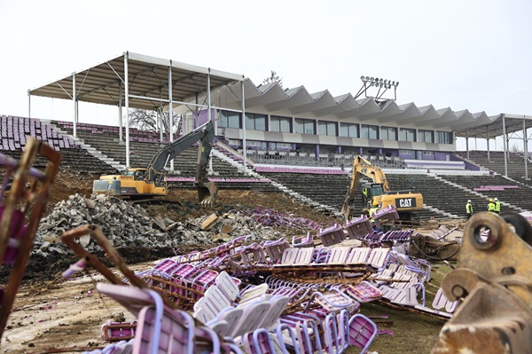 Președintele Consiliului Județean Timiș, Alfred Simonis, a fost astăzi pe teren, la stadion, pentru a pentru a verifica stadiul lucrărilor de demolare începute pe 24 februarie.