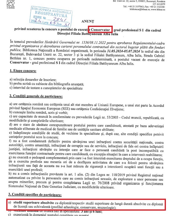 Așadar, de ce le-a fost interzis accesul la acel concurs absolvenților de chimie de la Universitatea de Vest din Timișoara, de exemplu? De unde și până unde doar un inginer în chimie și cu master la purtător putea să ocupe postul de conservator carte debutant?!