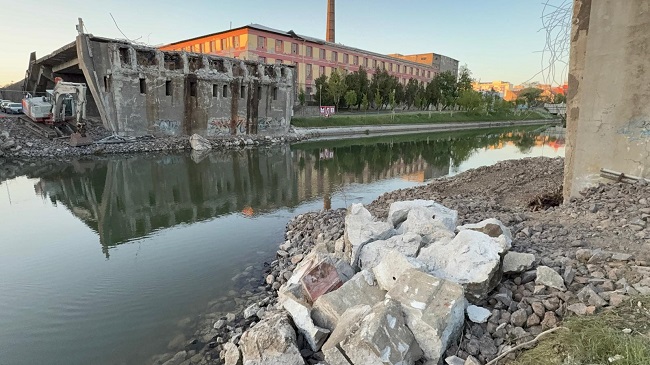 În faza de demolare, lucrările generează deșeuri care ajung în Canalul Bega, situație confirmată de autoritatea responsabilă de navigație ca fiind „temporară”.