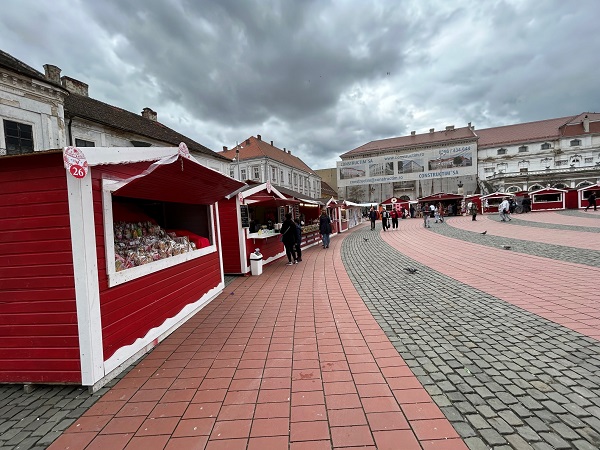 Căsuțele pentru micii comercianți, aceleași de anul trecut, vopsite tot în roșu, amplasate în Piața Libertății oferă diverse alimente de la slănină și mezeluri la kürtös kalacs și turtă dulce până la mici suveniruri și decorațiuni.