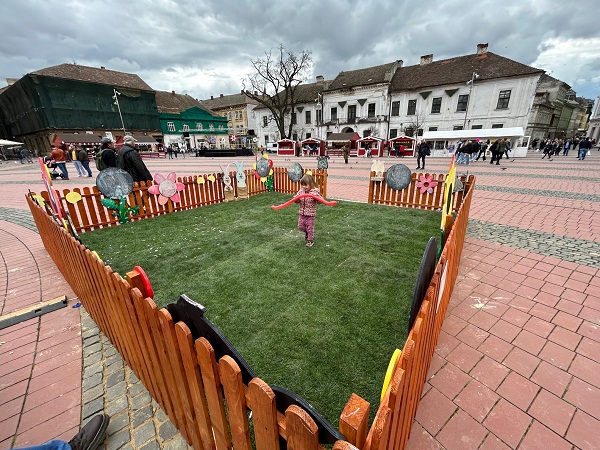 După ce fosta administrație a pavat în roșu Piața Libertății și a desființat toate insulele cu iarbă și copaci, anul acesta organizatorii târgului au montat, ironic, o “insulă” pătrată, cu gazon verde, chiar în mijlocul piațetei. Acesta este un loc de joacă pentru copii în care micuții să poată lua contact cu singurul lucru natural din piață: un țarc cu iarbă verde.